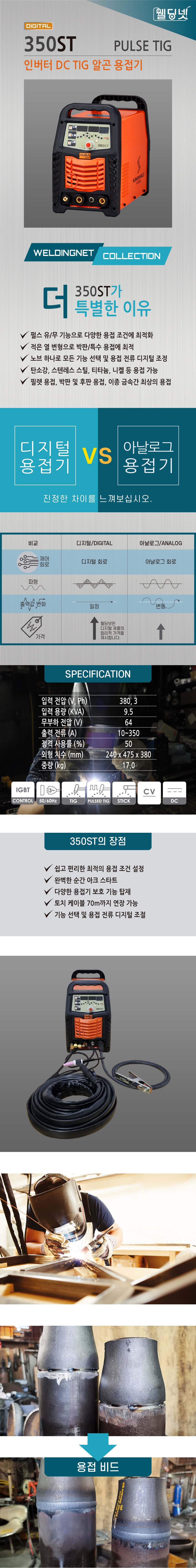 디지털 펄스 DC TIGㆍ티그ㆍ알곤 스텐레스(서스) 용접기 350ST 풀세트